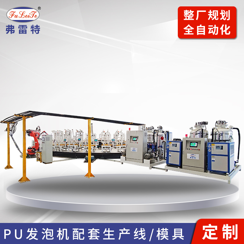 我公司自主研發(fā)的大型自動(dòng)化PU轉(zhuǎn)盤發(fā)泡生產(chǎn)線能實(shí)現(xiàn)連續(xù)型、多工位、全自動(dòng)化生產(chǎn)等主要功能,主要應(yīng)用于汽車、摩托車、健身器材、座椅、腳墊等聚氨酯發(fā)泡生產(chǎn)。整條生產(chǎn)線只需要二人就可完成生產(chǎn),一天24小時(shí)產(chǎn)能大于等于5000個(gè)產(chǎn)品,主要由上位工控機(jī)、掃碼讀碼系統(tǒng)、FLT-ZD/S型全自動(dòng)控制模具模架、德國庫卡機(jī)器人、FLT-12G可變比例的聚氨酯高壓發(fā)泡機(jī)、FLT-12M預(yù)混站、FLT-ZK-PP/T真空破泡機(jī)等主要設(shè)備組成: